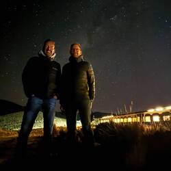Wir halten in der Dunkelheit, um den Sternenhimmel zu betrachten.