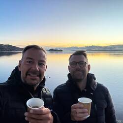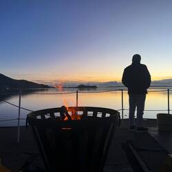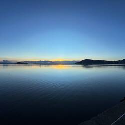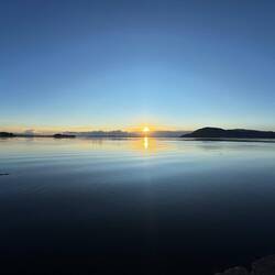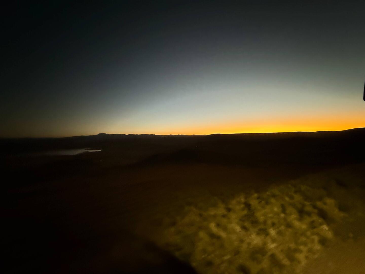 Wir stehen um kurz vor fünf auf, damit wir den schönen Sonnenaufgang sehen können.