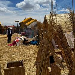 Hier leben tatsächlich Menschen auf Strohballen, auf denen sie Hütten gebaut haben.