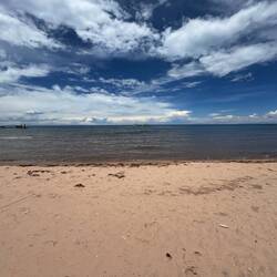 Wir fahren zu einer Insel mit dem höchsten Sandstrand der Welt.
