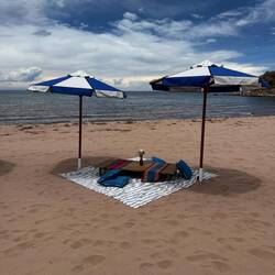 Die Zug Gesellschaft hat extra für uns einen Beach Club aufgebaut und verwöhnt uns.