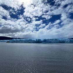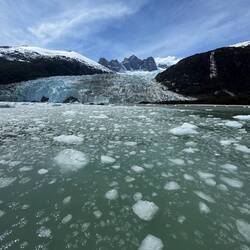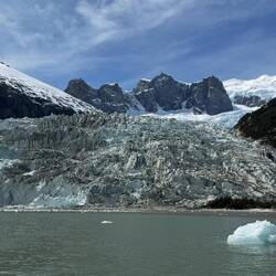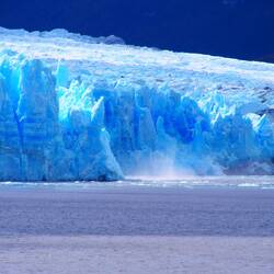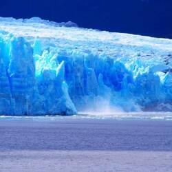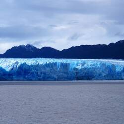 Ähnlich wie der Moreno Gletscher bewegt er sich auch und kalbt immer wieder was laut kracht und je nach herunterfallenden StückEn savoir plus