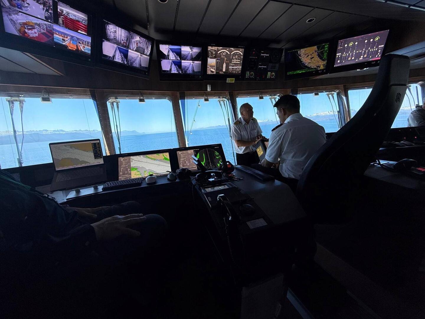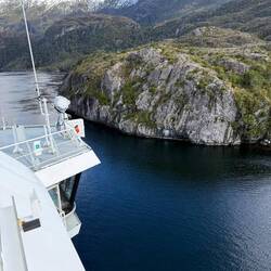 Das Schiff muss circa 30 Minuten lang, durch eine ziemlich enge Stelle manövrieren