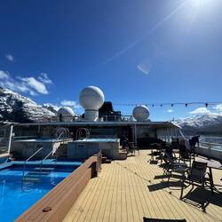 Auf dem Kabinen Balkon ist es windstill und sehr warm.