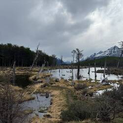Überall Bieber Bauten und abgefressene als auch abgestorbene Bäume