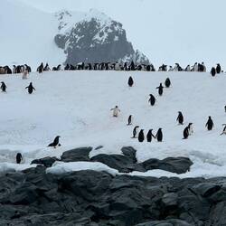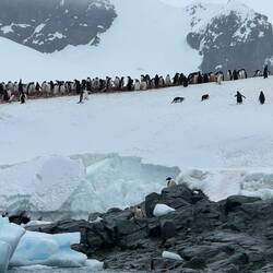 Nach dem Mittagessen geht es erneut ins Zodiac, und wir besuchen eine riesige Pinguin Kolonie.