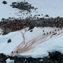 Hier sind wieder ganz viele Pinguine, die durchaus auch schmutzig sein können, viel ausscheiden und der Schnee ist dann nicht ohne GrundBaca lagi