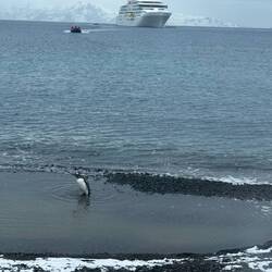Wir sehen wieder Pinguine und auch ein Orca taucht vor uns auf.