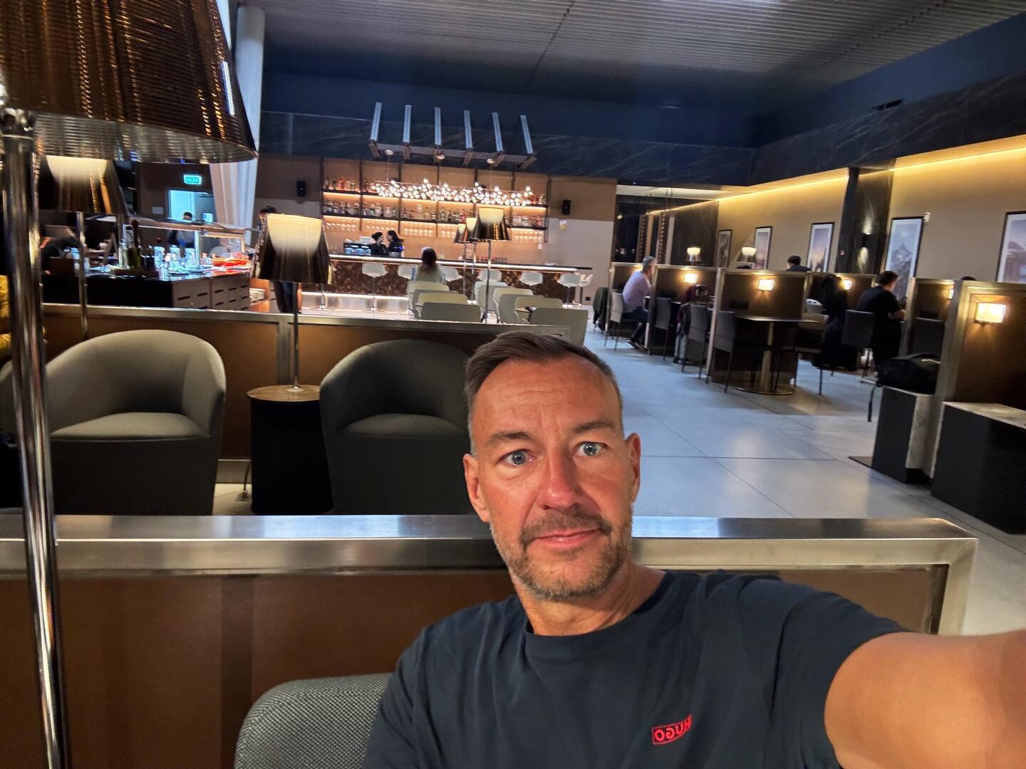 Wir warten in der bisher schönsten Flughafen Lounge auf unseren Abflug