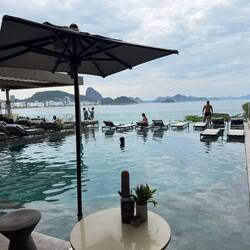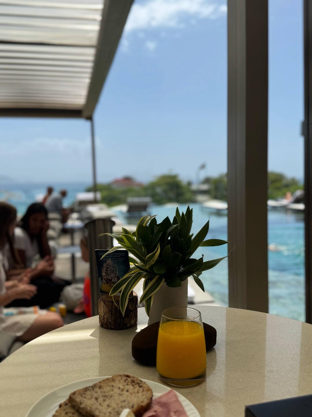 Heute ist beim Frühstück fast nichts los und wir können uns einen schönen Platz aussuchen.