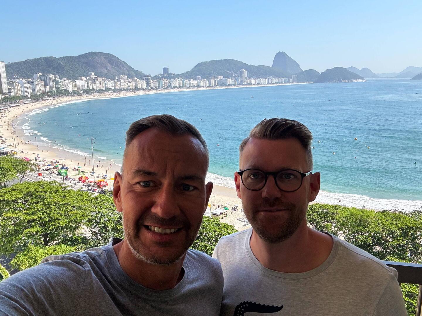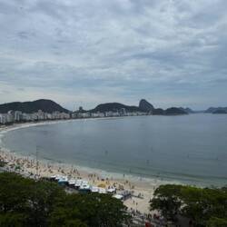 Wir haben ein ganz tolles Zimmer in der zwölften Etage mit Blick über die Copacabana.