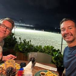 draußen etwas essen und dann geht es noch draußen in eine Bar etwas trinken, wir genießen es, draußen sitzen zu können.