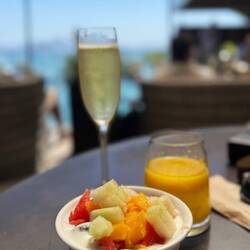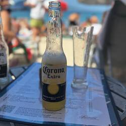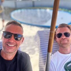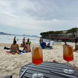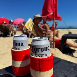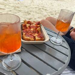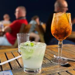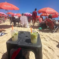 Auf den Rückweg genießen wir einen Drink am Strand.
