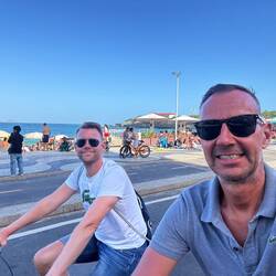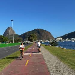 Nach dem Frühstück mit Blick über die Copacabana entspannen wir erst etwas am Strand, bevor wir mit gemieteten Fahrrädern eine kleine Tour machen.