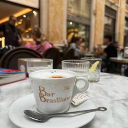 Wir sitzen…..die Italiener stehen natürlich mit ihrem Snack und Espresso an der Theke….