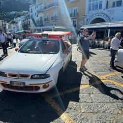 Erstmal wieder runter durch die engen Gassen zur Standseilbahn um runter zum Hafen zu fahren, dann mit dem außergewöhnlichen Fiat Open Air Taxi weiter nach Anacapri