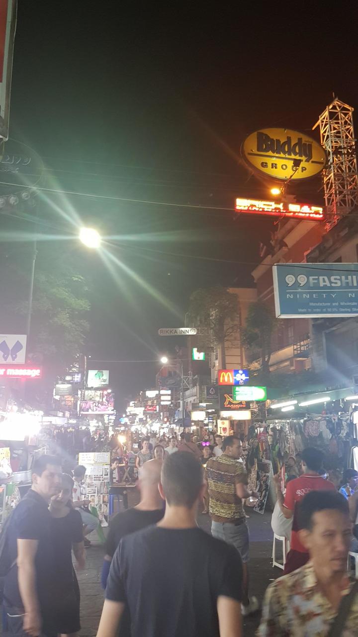 Kommen wir erst zum Update von gestern. Nachdem wir mit zwei Taxis in der berühmten Khao san Road angekommen sind, mussten wir uns erst wiederfinden.