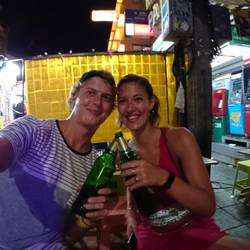 Die Strasse ist voll mit feiernden Touristen. Von überall hört man laute Musik. Wo man auch steht alle 5 Minuten will man dir einen gegrillten Skorpion, Bändeli mit nicht jugendfreien Sprüchen oder Lachgas verkaufen. Dazu gibt es überall Bier und Drinks zu kaufen. Im Verlauf des Abends konnten wir auch den einen oder anderen Ladyboy auf der Suche nach Opfern sehen. Um 1 Uhr ist der Spuck vorbei und die Stände schliessen langsam. Clubs gibt es nicht und wenn, dann nur solche welche ganz bestimmte "Ping-Pong Shows" anbieten. Bis wir alle wieder eingesammelt habe, ist es dann doch schon halb 4 bis wir zuhause sind.