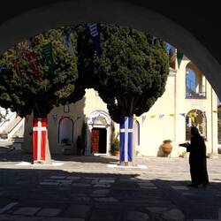 Bei der Weiterfahrt finden wir das Weinmuseum doch noch - öffnet am 2. Mai; wir haben alles richtig gemacht! 👍 Nächstes Ziel ist die Ostspitze der Insel, soweit die mit dem Auto erreicht werden kann. Finden wir ganz gut hin und besichtigen das dortige Kloster. Tolle Atmosphäre, so ruhig und kontemplativ. Und dann ist es doch langsam Spätnachmittag geworden, der Heimweg steht an, und nicht zuletzt das Abendessen. 😉