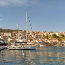 Die finden wir fast auf Anhieb; kann man nicht verfehlen, möchte man meinen, dich die Namen "Sámos" und "Vathy" werden hier meist synonym verwendet. Unserem Eindruck zufolge ist Vathy eher die Altstadt bzw. ein Vorort, in dem wir zuerst und auch gleich in einer Sackgasse landen. Kurze Schleife später sind wir dann an der Uferpromenade mitten im Geschehen. 😎
