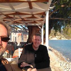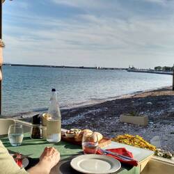 Es geht auf Abend zu, wir haben fast nichts gegessen heute und entsprechend Hunger. Im ersten Küstenort können wir keine geeignete Taverne finden. Dann fahren wir etwas unschlüssig grob Richtung Heimat, und haben Glück! In einem winzigen Hafendorf sieht ein Lokal einladend aus, obwohl noch niemand da ist. Wir erleben wieder sehr freundlichen Service und köstliches Essen: Haisteak für Ralf, ganz viel Knoblauch für Roland. 😏 Danach geht's gar heim, ohne viel Drumherum machen wir Feierabend und planen morgen Faulenzen ein. Mal sehen. 😎Read more
