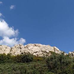 Anschließend möchte Ralf, den der Wanderführer aus irgendeinem Grund wohl genervt hat 😇, einfach ins Unbekannte losmarschieren. Gut, wir waren ja schon bei"Pappa Beach", da laufen wir nochmal hin und dann weiter. Rechts und links abwechselnd Olivenhaine und Kiefernwäldchen, wie man es sich an der Küste entlang vorstellt. Irgendwann sind wir unterwegs auf weißem Flecken unserer Karte, und leider sehr viel schwarzen "Böbberle" (Ralf) der ansässigen Ziegen oder Schafe. 🙄