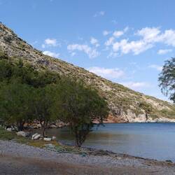Wieder scheint die Sonne, kein Wölkchen steht am Himmel, als wir uns auf der Terrasse zur Tagesplanung treffen. Heute steht neben dem Einkauf von Verpflegung für den morgigen Sonntag wieder eine Wanderung an. Weil wir auf der Insel ja rumkommen wollen, ist das Ziel schnell klar: Die Höhle des Pythagoras im Südwesten soll es sein.