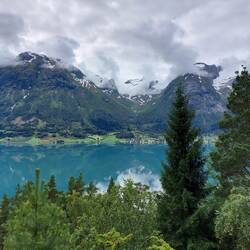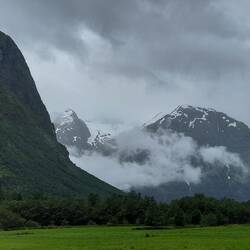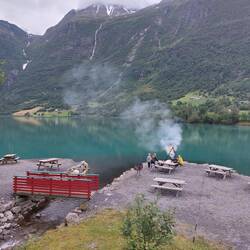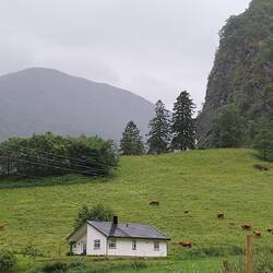 Fahrt Richtung Olden durch die wunderschöne Fjordlandschaft. Unterbrochen von Baustellen, Ziegen und 🐄 herden auf der Straße. Dauerte also etwas. Abends ein Spaziergang am Oldevatnet durch Kuh,Read more