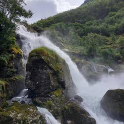 Wanderung zum Brekkefossen bei Nieselregen. Nette Begegnungen, schöne Wanderung. Auf den Weg zur Kirche von Flåm wurde der Regen stärker und Privatwege versperrten uns manchmal den Weg. Nach 16 kmRead more