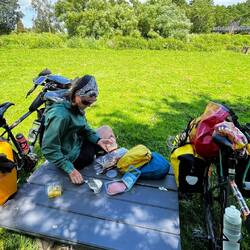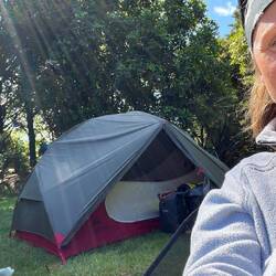 Un doux départ et une étape beaucoup moins vallonnée. On arrive au bout pour voir l’Estuaire du Thames. Le camp est bienvenue. Actuellement en attente de fin d’averse 🌧️😅 Mais content !
