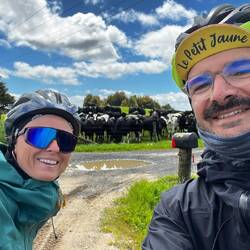 Après une journée d’hier éprouvante, celle-ci fut réconfortante. On se sent mieux sur le vélo et dans nos corps. Tout se fait petit à petit. Quelques réglages à faire subsistent.