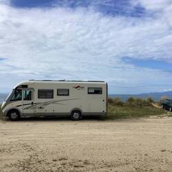 Morgen soll es lt. Wetterbericht regnen. Da muss es ein gemütlicher Platz sein. Den haben wir hier gefunden. Wir stehen direkt am Meer und hoffen, dass das Wasser nicht näher kommt. Sogar einenLeggi altro