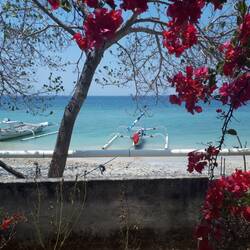 Doch keine 15min später saßen wir auf unseren kleinen Boot und fuhren mit einem einheimischen Fischer entlang der Inselküste, bis er uns schließlich quasi direkt bis vor die Haustür (= am Strand) abwarf und sich wieder in Richtung Festland aufmachte. Da waren wir, endlich auf Gili Gede angekommen. Ein Schild mit der Aufschrift "no shoes, no shirt, no problems" (kurze Übersetzung für unsere Omis: "Keine Schuhe, kein Shirt, keine Probleme) sprang uns ins Gesicht, wir liefen grinsend und kopfschüttelnd daran vorbei und mit einem endlich weniger flauem Gefühl im Magen, bezogen wir unser neues kleines Holzhüttchen.