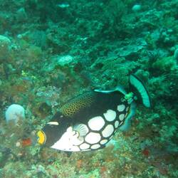 Ich weiß nicht, was sich besser anfühlte: zu wissen, dass man keine Flüge hat oder zu wissen, dass man Lion-Air-Flüge hat. :D Egal, einfach nicht drüber nachdenken, ab ins Neopren! Denn auch wenn wir es fast vergessen bzw. verdrängt hatten, lag ja immer noch einer der besten Tauchplätze der Welt vor unserer Nase. Völlig euphorisch jumpten wir in unsere Anzüge, checkten ein letztes Mal das Equipment, fischten unsere Masken aus dem Maskenbecken und schnallten uns den Bleigurt um. Natürlich fuhren Jule und Leander mit raus aufs Meer, um zum Schnorcheln abgeworfen zu werden. Und auch wenn Jules Rückwertsrolle vom Boot mit "Look! Whale Shark! Whale Shark" kommentiert wurde, ließen wir uns davon keineswegs die Laune verderben. Spätestens beim Abtauchen war dann jeglicher Flügekummer vergessen und man ließ sich über die Korallen treiben.
