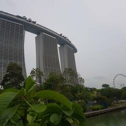 Völlig erschöpft fanden wir den Weg über die Formel 1 Rennstrecke zum bekannten Riesenrad und von dort aus war der Weg zu Singapurs Wahrzeichen, dem Marina Bay Sand, auch nicht mehr zu verfehlen. Überwältigt von all dem Luxus, aber besonders der ziemlich kalten Klimaanlage, die zwischen Lobby und Außenbereich vermutlich 15°C Unterschied schaffte, schleppten wir uns zur nächstbesten Parkbank im nicht weit entfernten Gardens by the Bay.