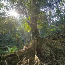 Der Geschmack geht in Richtung Birne, aber auch nur, wenn man Glück hatte. ^^ Auf dem Rückweg wurden wir von Affen begleitet, weshalb wir schnell alle für sie potenziell interessanten Sachen im Rucksack verstauten.