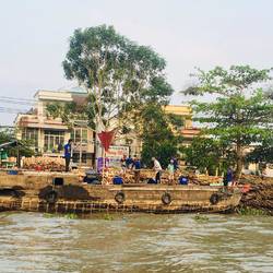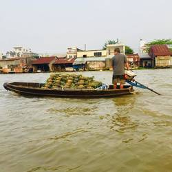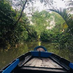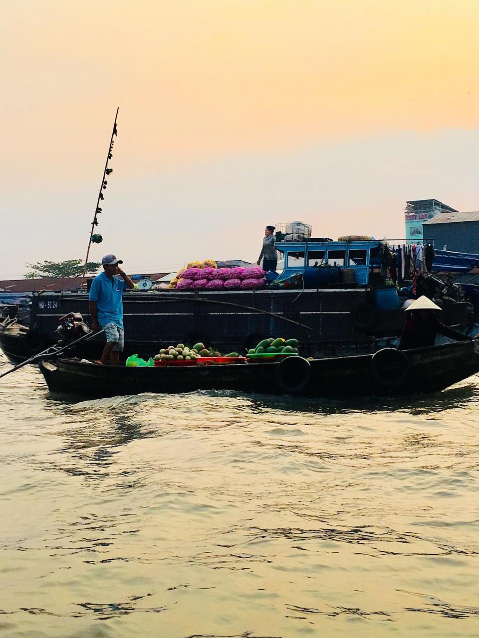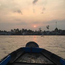 We woke up at 4am to go on a tiny boat to the Cai Rang floating market ~ Mekon Delta which Can Tho is famous for. A little Vietnamese woman drove the boat and didn’t speak a word of English but she was very sweet. At one point we got wedges between a palm tree and a big barge so we had to help pull the boat through.