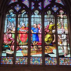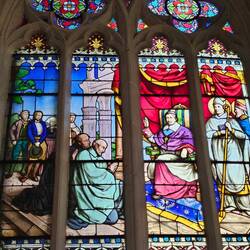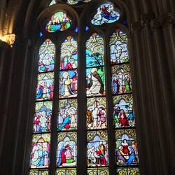 An der riesigen Kathedrale fanden wir insbesondere die vielen bemalten Fenster interessant. Und etwas verwundert waren wir, dass die Kathedrale einen sogenannten "Achsknick" in ihrer Hauptachse hat.