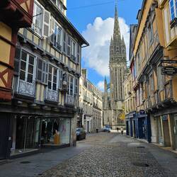 Von unserem kleinen Strandparkplatz geht's weiter: Die Stadt QUIMPER mit ihrer schönen Kathedrale sowie dem "kleinen exotischem Garten" wollen wir uns anschauen.