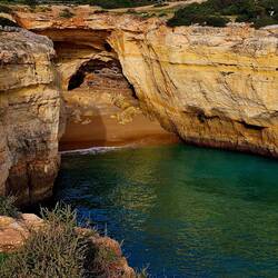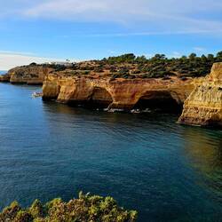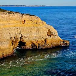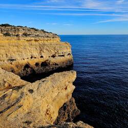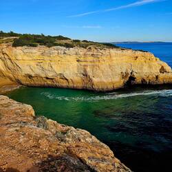 Während wir gestern an einem der bekanntesten Strände der ALGARVE waren, waren wir heute oberhalb einer der bekanntesten Felsenküste wandern: Den BENAGIL Felsen und Höhlen