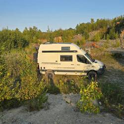 Unser Ü-Platz ist einerseits in der Stadt - andererseits im Wald. Eine ruhige Nacht steht zu erwarten.Leer más