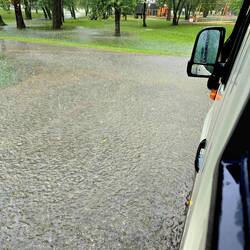 Schon bei unserem Besuch des "Centers of CANADA" war der Himmel dunkelgrau und schwere Gewitter waren im Anmarsch - sogar eine Tornadowarnung ging auf dem Handy ein.