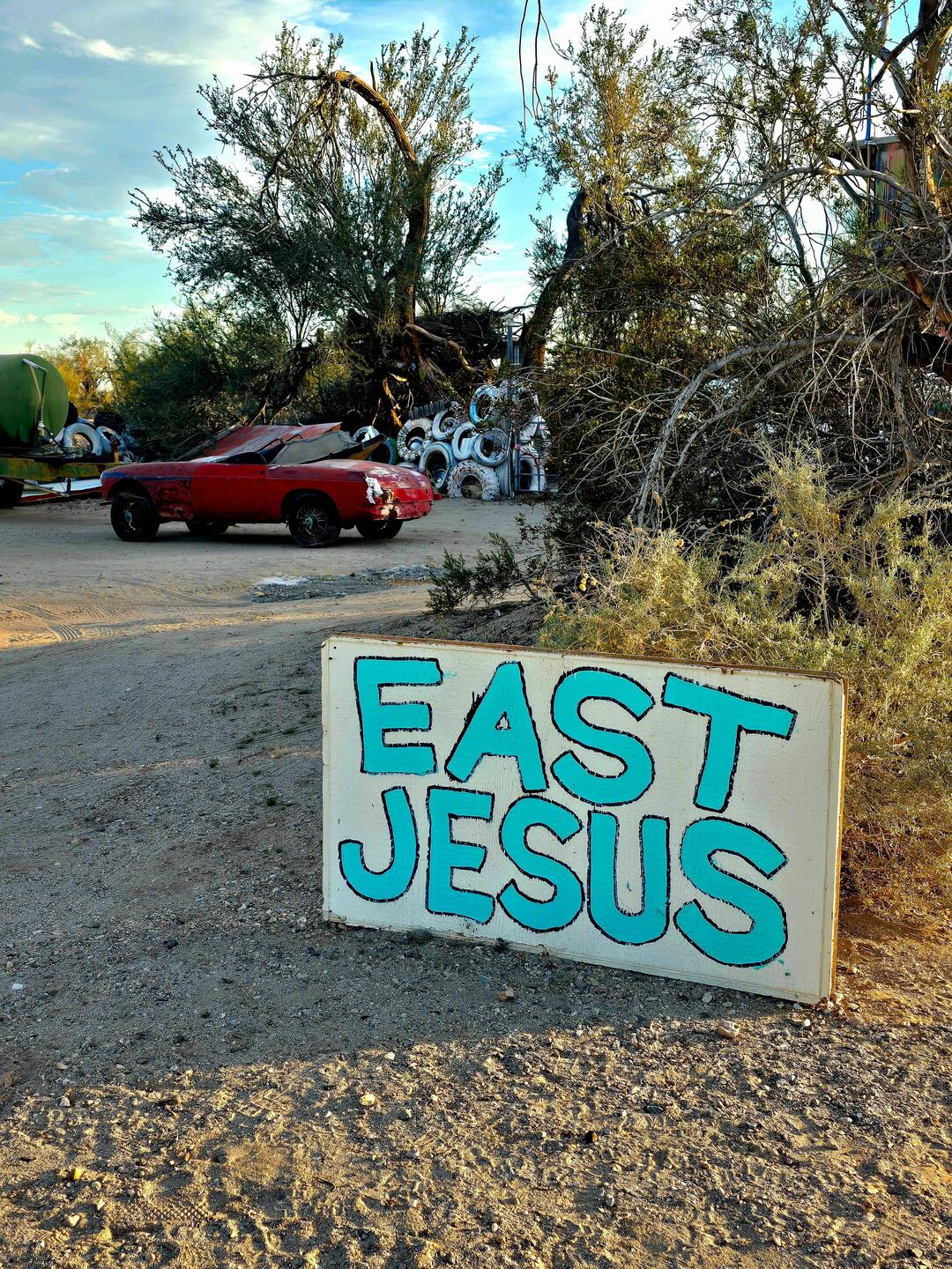 EAST JESUS war/ist ein Kunstprojekt. Der Künstler wollte zu einem Leben ohne Müll beitragen/inspirieren.