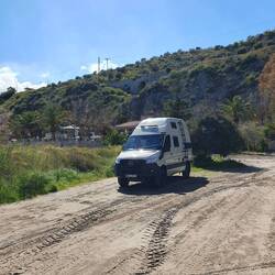 Da gilt es doch, einen Stellplatz an einem Sandstrand zu finden. Außerdem muss das Auto so oder so bewegt werden: Der Wassertank istLeggi altro