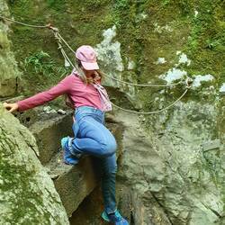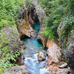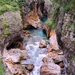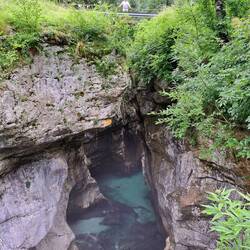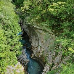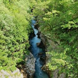 Aber ein Stopp musste sein: Der Anblick, wie die SOČA sich einen teilweise nur 1 mtr breiten Canyon in die Felsen geschliffen hat, ist immer wieder beeindruckend. Und auch das türkis-grüne Wasser sieht immer wieder toll aus.