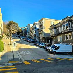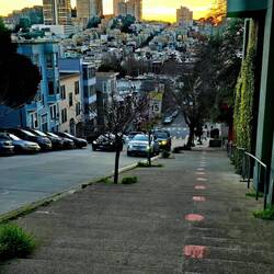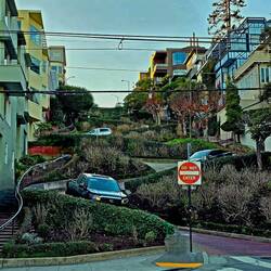 Natürlich machen wir einen Stopp an der Lombard-Street: Wer kennt nicht die steile Straße in SAN FRANCISCO, die man nur bergab und in Serpentinen fahren kann ....
