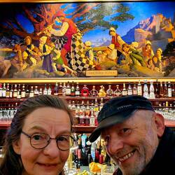 Bei dem Besuch des Turms hatten wir eine interessante Begegnung. Wir kamen mit einem der Beschäftigten ins Gespräch. Und als er hörte, dass wir aus der "Rattenfängerstadt" mit der Geschichte des "Pied-Pipers" kamen, erzählte er uns von dem Gemälde in der Bar des Luxushotels "Palace Hotel".