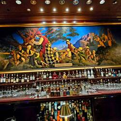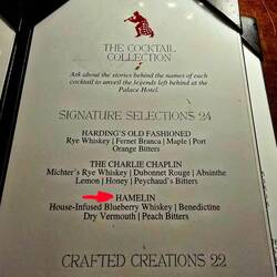 Das mussten wir uns anschauen. Also gingen wir ins Hotel, erzählten unsere Geschichte und der Hotelmanager höchstpersönlich führte uns in die "Pied Piper Bar" mit dem riesigen Gemälde des "Pied Pipers". Seit der Wiedereröffnung des Hotels 1909 (das ursprüngliche Palace Hotel wurde bei dem Erdbeben 1906 zerstört) hängt das Gemälde hier. Nur den Hintergrund konnte er uns nicht nennen. Natürlich nahmen wir in der Bar ein "Getränk" zu uns - allerdings nicht den Cocktail "HAMELIN" - der stand tatsächlich in der Karte.