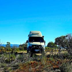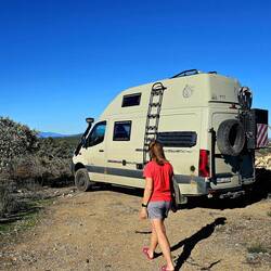 Umso größer unsere Freude, dass wir doch einen schönen Stellplatz finden konnten. An einem See unterhalb einer kleinen Staumauer (stimmt wirklich so), verbrachten wir einen ruhigen Silvesterabend. Ein Video-Call mit Anne und Christian ("van.we.bike") verkürzte die Zeit bis Mitternacht - die Sektflasche hatten wir aber schon vorher geköpft, sonst hätten wir sie nicht leergebracht.