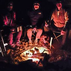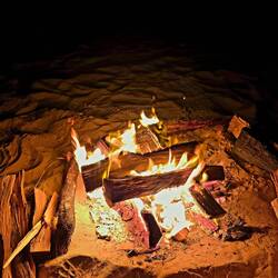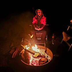 Leider ist abends fast immer starker Wind - so kommen wir nur einmal zum abendlichen Lagerfeuer.